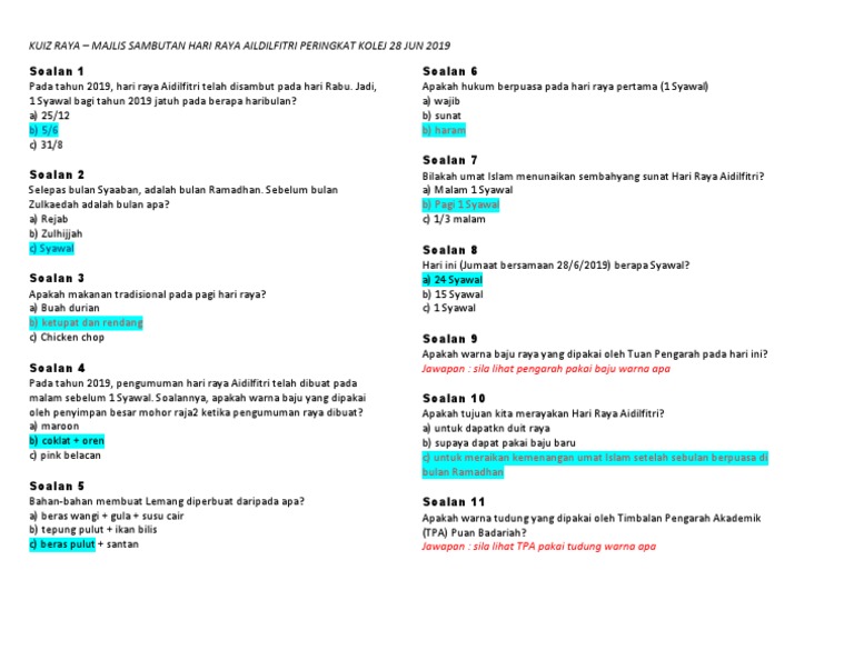 Contoh Soalan Hari Raya Aidilfitri Contoh Am Otosection